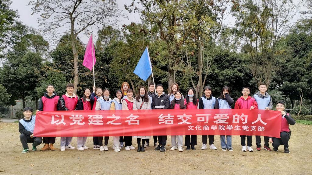 为全面提升学院青年入党积极分子思想素养,树立优秀示范群体,促进学生党支部的团队建设,文化商学院学生党支部于11月27日在驿泊源拓展基地开展了素质拓展活动。支部书记王萌莉及辅导员侯星老师带领我院第十四、第十五期业余党校优秀学员参加本次活动。
