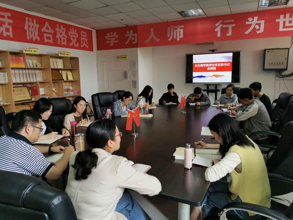 10月11日下午,文化商学院学生党支部在二教四楼党员活动室召开“不忘初心、牢记使命”主题教育阶段总结会,支部全体党员参加会议,会议由支部书记吴燕霞主持。