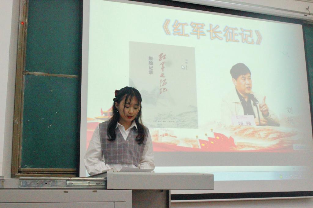 会上,三位同学通过声情并茂的讲解、朗读、视频分享,交流了他们阅读《红军长征记》《红星照耀中国》《保卫延安》等书籍的体会和感想。两位同学带领重温了中国共产党的百年峥嵘岁月,讲述了中国共产党的奋斗历程、光荣传统、优良作风以及宝贵经验,并号召同学们要真学、深学、主动学好党史。通过学习分享,在场同学纷纷表示将珍惜来之不易的幸福生活,青春与信仰同行,把个人理想同民族命运、祖国发展紧密结合起来。
