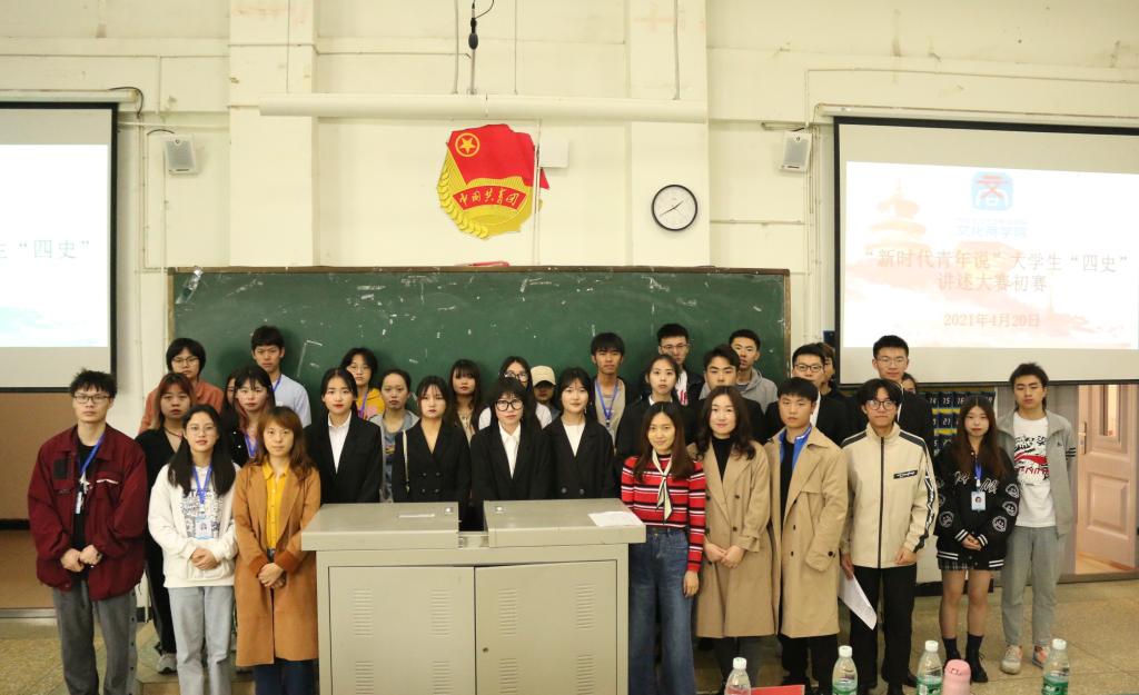 在建党百年之际,为了深化青年大学生在学思践悟中对党史、新中国史、改革开放史、社会主义发展史的认识,让红色基因、革命薪火代代传承,文化商学院于4月20日中午在二教104开展了以“信仰·复兴”为主题的“新时代青年说”大学生“四史”讲述比赛。学院学生党支部书记王萌莉、分团委负责人罗婷婷、学生会指导老师马新怡、生活权益部指导老师刘燕、团学干部及学生代表观看了本次比赛。