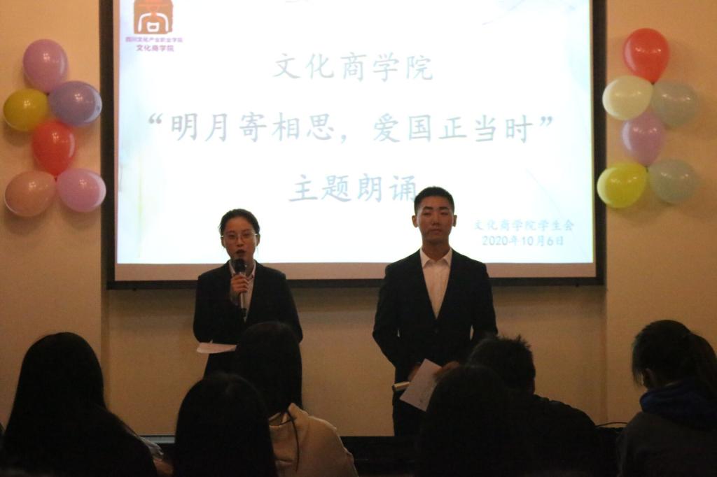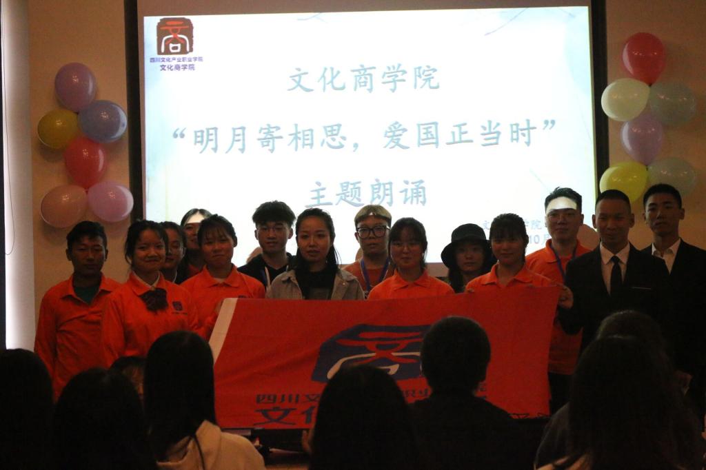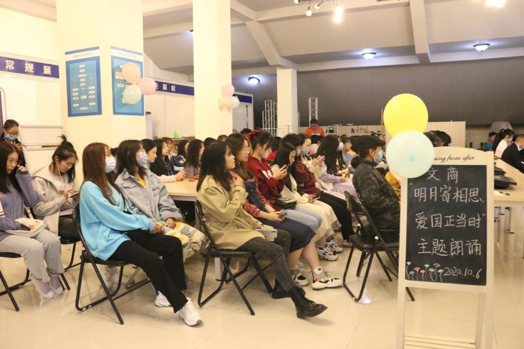 为了弘扬爱国主义精神、传递家国情怀,在祖国母亲71周年诞辰及中秋节到来之际,文化商学院于10月6日下午在明道楼一楼文经实训室开展了“明月寄相思,爱国正当时”主题朗诵活动。学院2019级全体团学组织成员及部分留校学生参加此次活动。