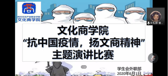 青年一代是有理想、有本领、有担当的一代,少年强则中国强,少年有为则中国有为。为了展现新时代大学生在疫情期间的家国情怀与责任担当,歌颂奋战在一线的志愿者,提升战胜疫情的信心,进一步做好疫情防控工作。6月1日,文化商学院学生党支部指导院学生会开展了主题为“抗中国疫情,扬文商精神”的主题演讲比赛。