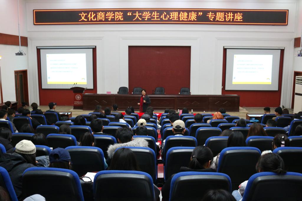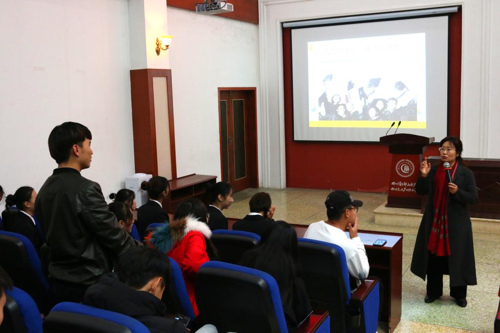 为了提高大学生对心理健康的认知能力,以积极向上的心态适应大学学习、生活。文化商学院于12月11日下午在二教105组织了18级、19级学生代表开展了以“我的大学,我做主——大学生活的适应”为题的大学生心理健康专题讲座。成都纺织高等专科学校思想政治教授、国家二级心理咨询师向群英担任本次的主讲人。
