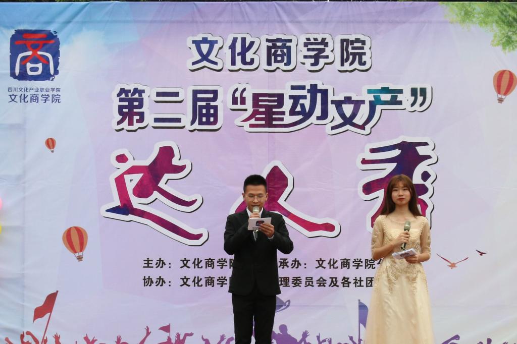 飞扬青春,秀出自我。5月8日下午,为了丰富同学们的第二课堂生活,挖掘学生潜质及特色,培养广大学子业余兴趣爱好,由文化商学院主办、分团委承办、社团管理委员会及各社团共同协办的第二届“星动文产”达人秀在我校艺体中心门前隆重举行,共计300名同学到达活动现场。