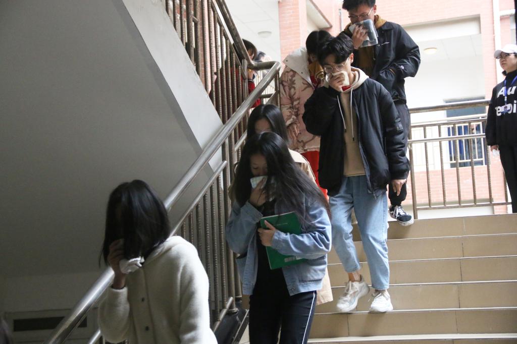 应急疏散演练分为两个部分。第一部分为预防火灾、地震安全知识培训。段玄锋对本次应急演练的目的、重要性以及活动安排做了详细的说明,并要求大家要树立安全意识,防患于未然。分团委学生副书记黄漫以《火灾、地震紧急疏散》为主题对参加演练的师生进行了安全知识的培训,重点介绍了灾情应对和急救逃生的正确方法。第二部分为现场安全应急疏散演练。随着一声哨响,参与人员迅速有序逃生,大家根据提前规划好的线路,捂住口鼻,快速疏散到校园安全区域。