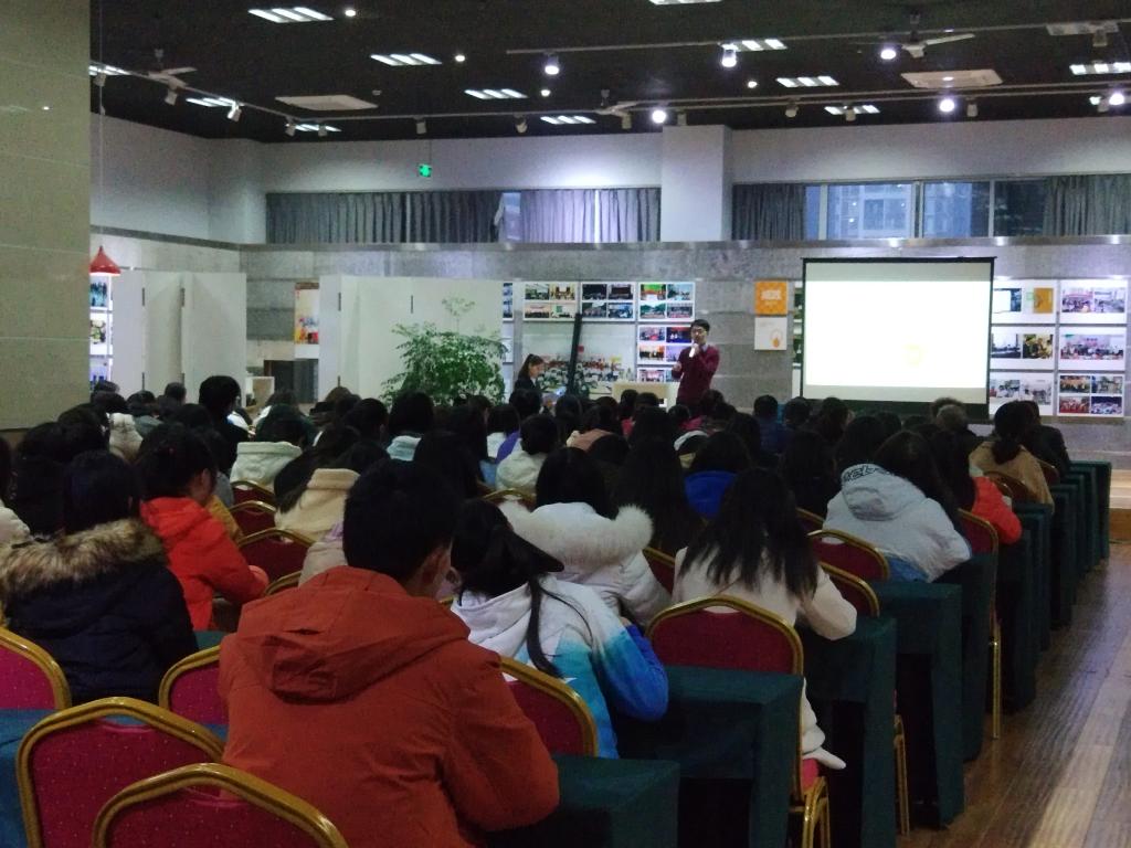 为了进一步加强弘扬“奉献、友爱、互助、进步”的志愿精神,建立和完善志愿服务机制,推动我院青年志愿服务团队有目标、有步骤开展志愿服务活动,在探索中不断前进。11月 29日下午 5:20,文化商学院于图书馆四楼举办青年志愿者培训会,邀请公益事业人士解读志愿精神内涵,学院党总支副书记焦健、社团指导老师黎孟奇、合作社区负责人及全院200多名志愿者参加了培训。