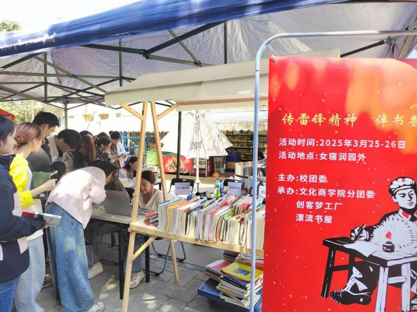 为积极践行雷锋精神,推动校园文化建设,文化商学院“创客梦工厂”社团联合“漂流书屋”于3月25日至26日,在女生公寓润园门口成功举办“传雷锋精神,伴书香温暖”公益捐书活动。