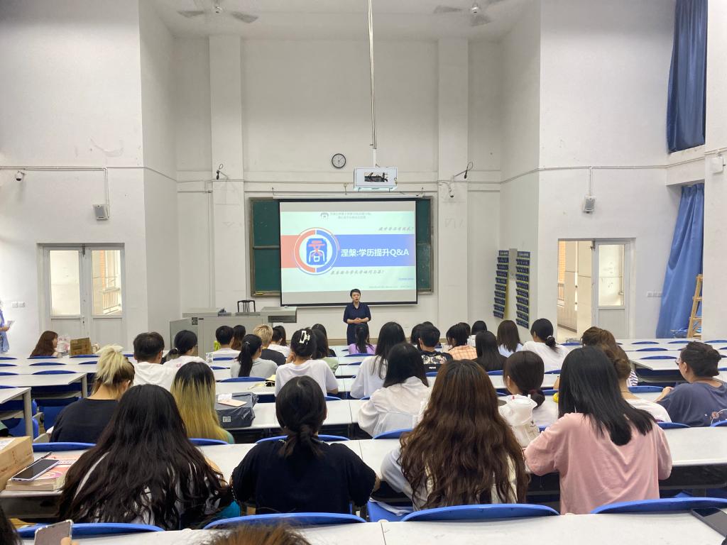 6月16日晚,由蒲公英文化商业实践营组织的“学历提升分享会”在第二教学楼213教室顺利举办。本次分享会邀请了3位优秀的往届毕业生返校,以“学历提升选择”为话题,与在校的学弟学妹们进行了交流与分享。