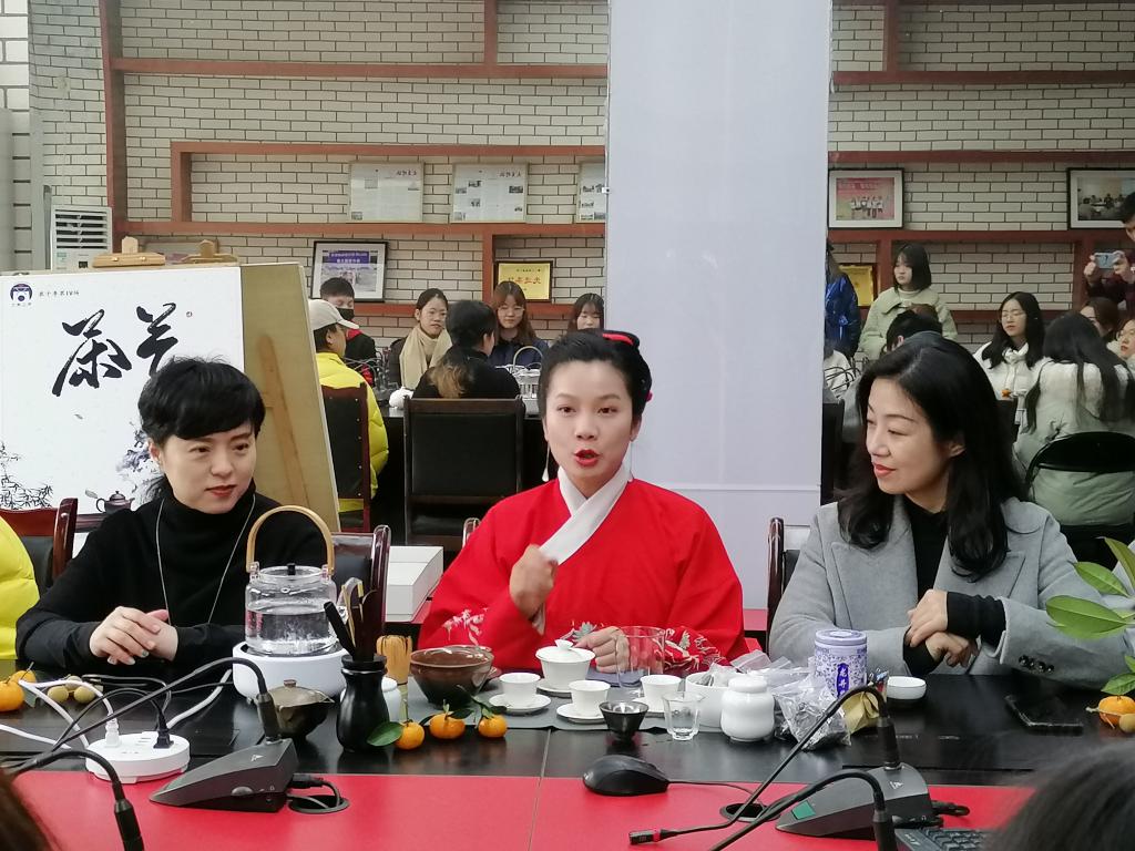 12月1日中午,文化商学院第十季“文商之声”讲坛第四场沙龙活动在创慧楼209会议室开讲。本次活动邀请了博茗茶产业技能培训中心高新区分中心高级茶艺师谢晓兰老师担任主讲嘉宾,向同学们传授有关于茶的知识,展示宋代点茶技艺。学院营销专业负责人谢力维和专业骨干教师王琛参加了本次沙龙活动。