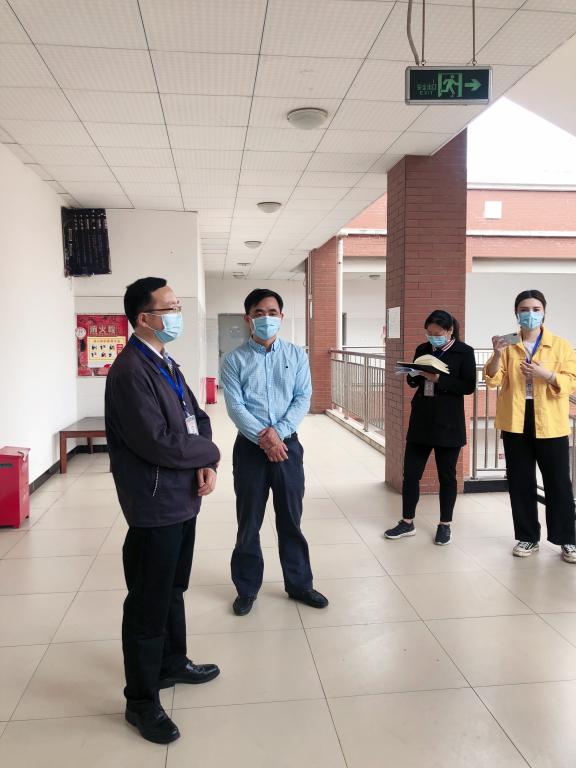 4月29日上午,学校校长罗晓东率相关部门负责人到文化商学院检查督导疫情防控工作及学生返校复课相关准备工作。
