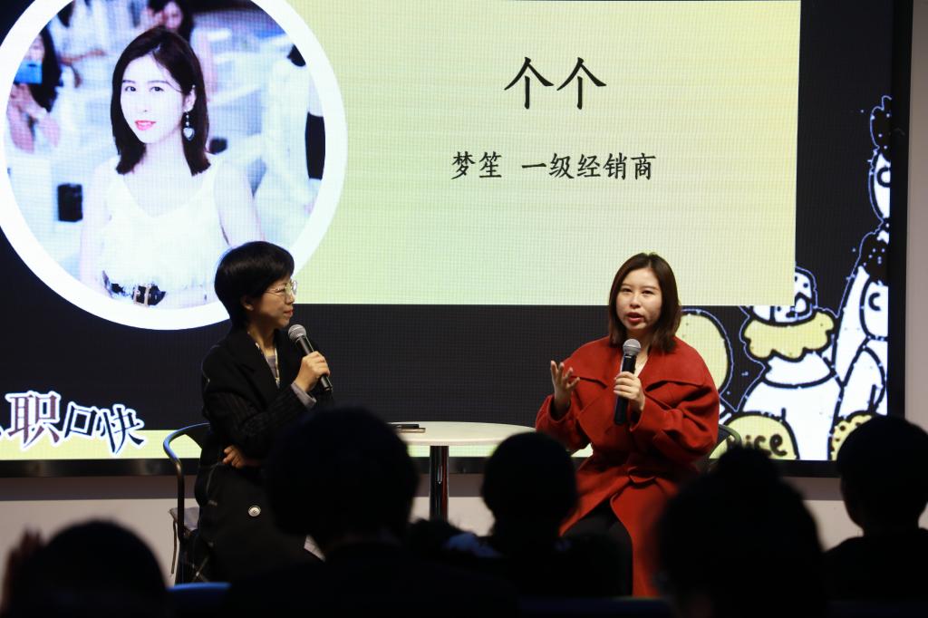 微商,是基于移动互联网的空间,借助于社交软件构建社交纽带的新商业模式。伴随着互联网技术的发展,这种新的商业模式也在不断壮大。从大学起就开始兼职微商的蒲泳竹女士分享了她从兼职转变成为全职微商的经历。她说,她选择在读大学时就开始兼职做微商,是喜欢这份兼职带来的自由,是喜欢创业带来的挑战感与成就感。大学毕业后,蒲泳竹女士虽然也曾接受家庭的安排从事着一份安稳的工作,但她觉得就这样始终待在父母营造的舒适圈中,自己永远长不大,所以必须要做些什么跳出去,经过思考与比较后,最终还是选择了自己喜欢的微商。将喜欢嵌入工作,在工作中努力认真,这是蒲泳竹女士给同学们的择业就业建议。在随后的互动交流环节,蒲泳竹女士还与同学们分享了如何开展微商营销、赢得客户的一些经验。