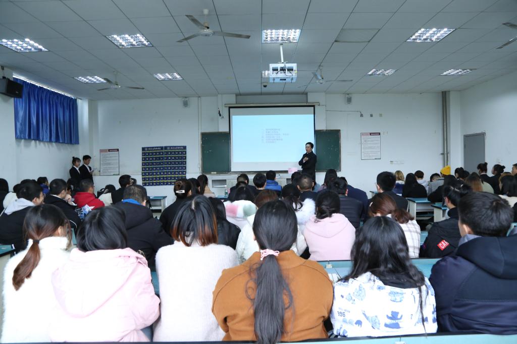 四川恒和信律所党支部副书记何妍雨、罗旭东等党员律师,文商学院党总支副书记焦健、学生党支部书记吴燕霞、商务专业负责人刘晓远、教师代表姚燕玲,和来自我院学生干部、入党积极分子、班级代表等百多名同学参加了本次宪法日宣传活动。