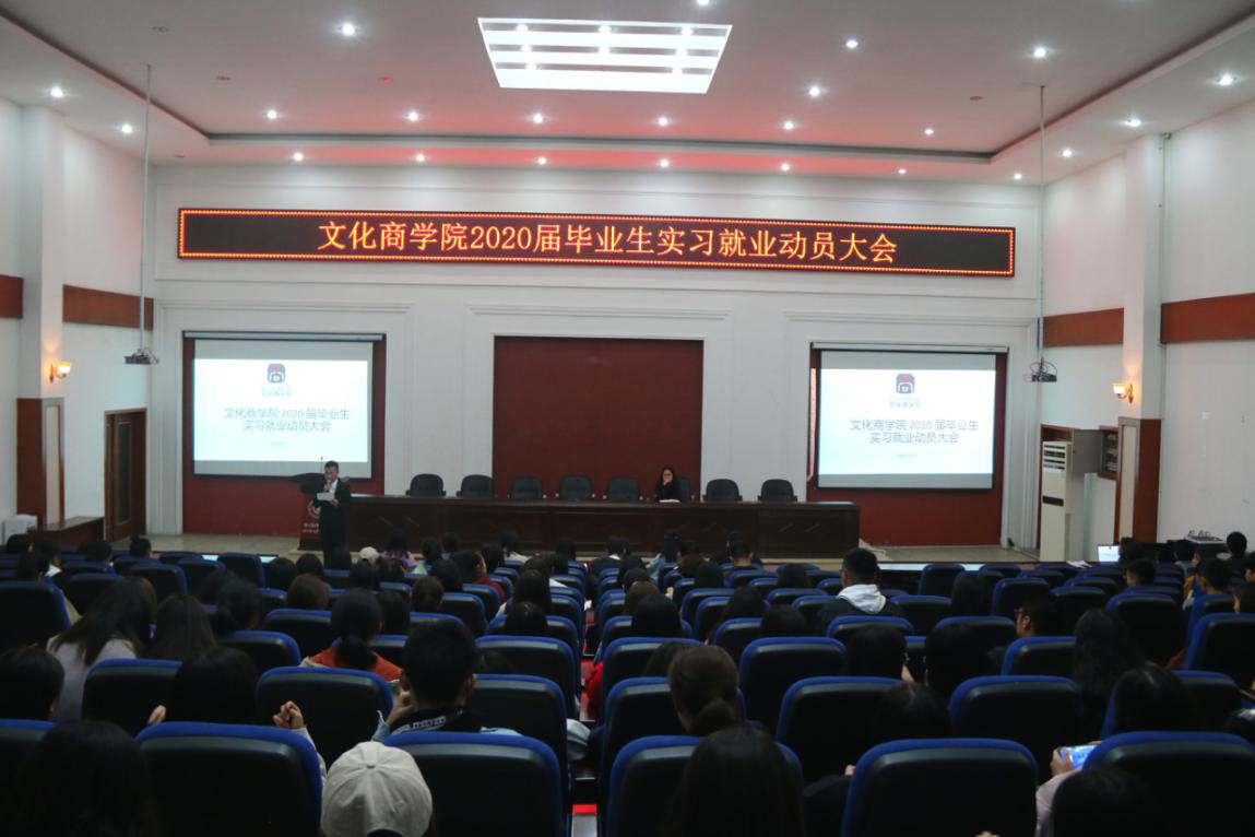 为帮助2020届毕业生了解今年实习就业工作的相关流程和注意事项,顺利完成顶岗实习任务,实现优质就业,11月 7日下午,文化商学院在二教105举行了2020届毕业生实习就业动员大会。学院副院长邓颖颖、就业指导老师杨萌、实习指导老师郭晓霞及全体大三辅导员老师、17级应届毕业生代表参加本次动员大会。
