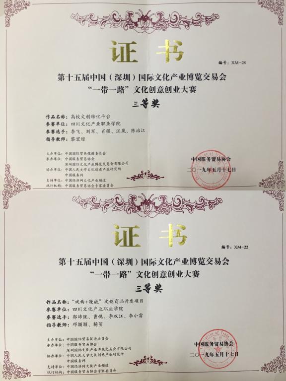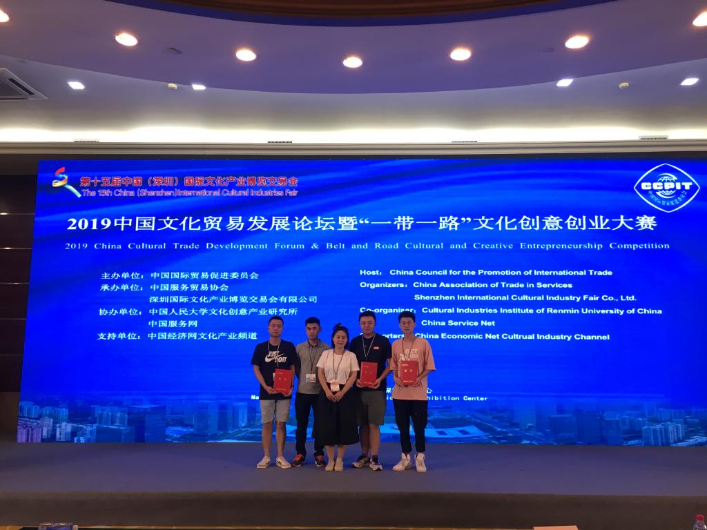 2019年5月16日至20日由中国国际贸易促进会、中国服务贸易协会、深圳国际文化产业博览交易会有限公司联合举办的2019中国文化贸易发展论坛暨“一带一路”文化创意创业大赛全国总决赛在深圳举行。