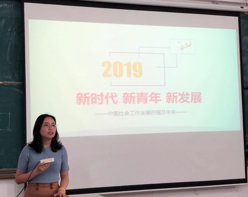 文化商学院于2019年4月23日下午在三教213教室,为公共文化服务与管理专业举办了“新时代,新青年,新发展——中国社会工作发展历程及未来”专题讲座。我校2011届毕业生、资深社工,成都榜样“蓉城最美社工”杜灿灿担任本次讲座的主讲人。文化商学院公共文化服务与管理专业的教师及200多名在校学生参加了此次讲座。