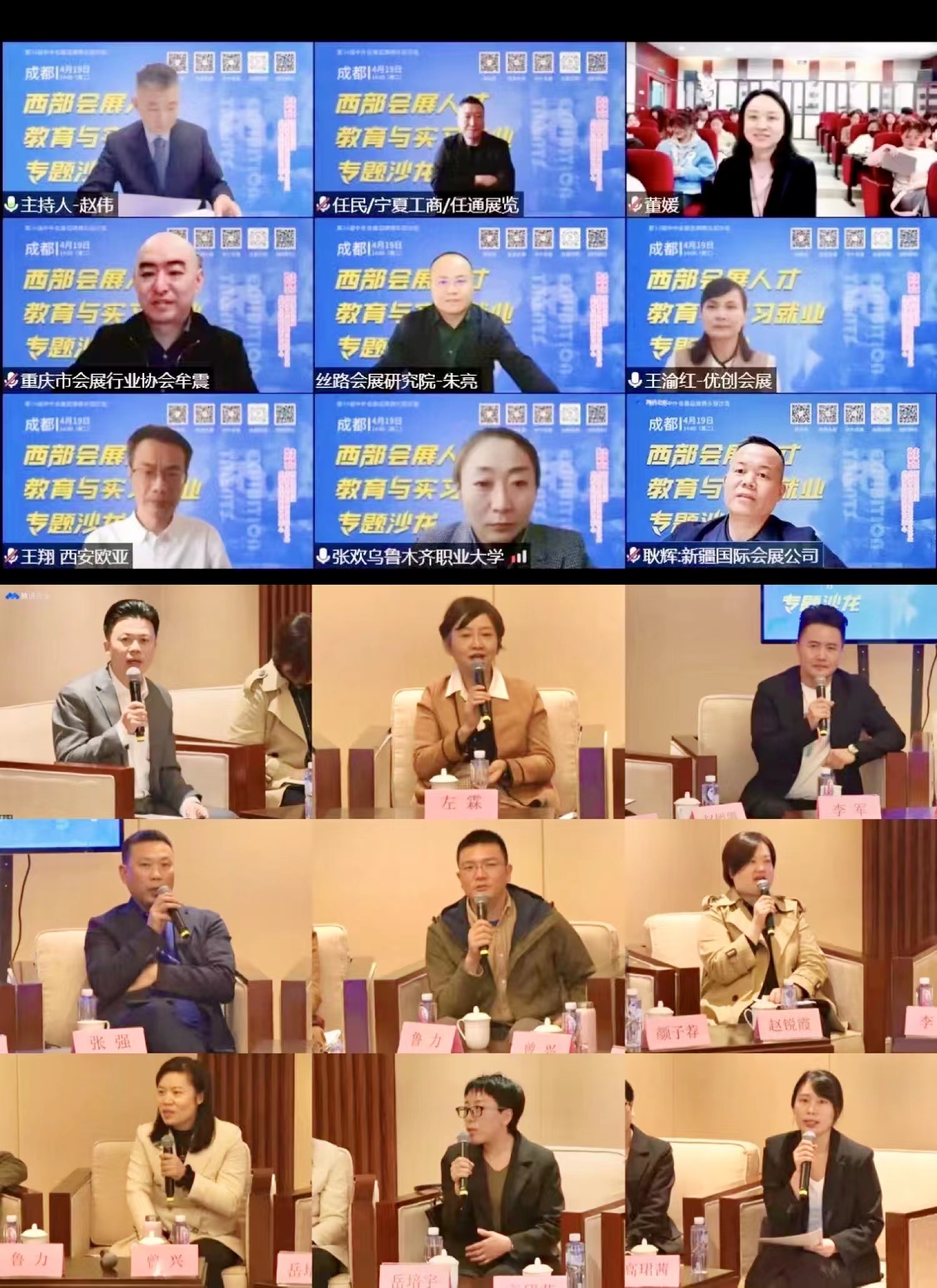 本次沙龙由新展国际传媒有限公司、中外会展杂志社主办,成都市会议及展览服务行业协会、成都世纪城会展集团有限公司协办,成都世纪城会展集团有限公司董事左霖、四川大学历史文化学院副教授鲁力、成都励翔文化创意股份有限公司董事长李军、重庆市会展协会秘书长牟震、乌鲁木齐市会展协会秘书长耿辉、重庆第二师范学院会展专业主任董媛、西安欧亚学院工商管理学院教授王翔等来自西部各省市会展领域的二十余位嘉宾线上线下齐聚一堂共话疫情下的会展教育与实习就业问题。