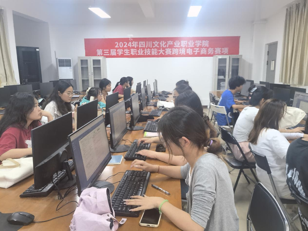 2024年5月30日,四川文化产业职业学院第三届学生职业技能大赛跨境电子商务赛项在仁慧楼203数字营销实训室成功举办,本次赛项由文化商学院文化产业经营与管理专业和移动商务专业承办,通过班级初赛,共有14名同学进入校级决赛。