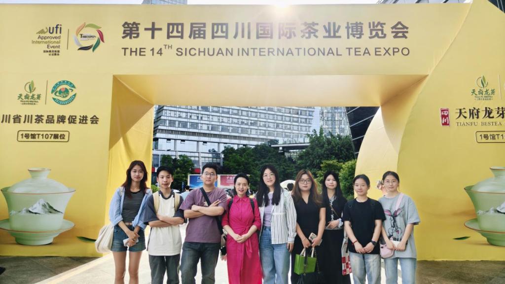 为了解行业前沿动态,提升学生专业认知,5月9日上午,文化商学院组织2023级市场营销专业100余名师生赴第十四届四川国际茶业博览会开展课程现场实践教学。学院教师王琛、杨萌参加活动。