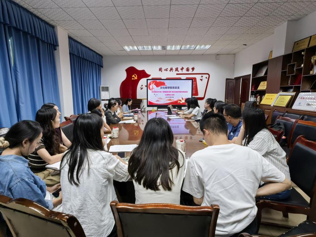 2025 年 9 月 24 日,文化商学院党总支在温故楼三楼会议室开展主题党日活动,全体党员参会,活动由党总支书记王维姝主持。