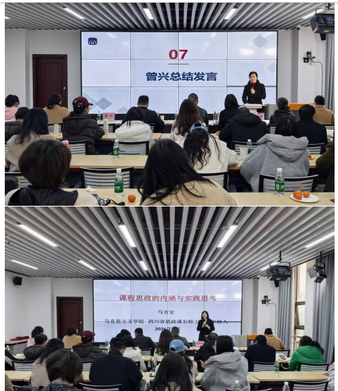 会上,成都职业技术学院严光玉教授以“职业教育成果凝炼与个人成长同向同行”为题开展讲座指导,从课程建设团队组建、申报材料逻辑架构、特色亮点提炼等实操层面分享宝贵经验。马吉宏副书记围绕课程思政内涵与实践路径展开理论探讨,帮助参会教师明晰融合要点。