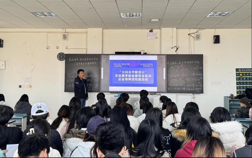 2026年3月26日至28日,第114届全国春季糖酒商品交易会在成都举行。文化商学院受校企合作单位北京昆仑亿发智慧科技有限公司的邀请,组织师生开展校外实践教学,完成校企合作项目。该项目是自2021年以来的连续第五次合作,为期两周时间,以校企协同模式服务国家级展会。会展策划与管理专业2024级100名师生参与项目。